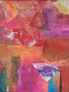 Amalgam explores the combination of printmaking techniques and monotype with drawing and painting to create abstract prints that reflect summer’s beauty. Amalgam is a summer show and summer is colour and light. In these works I explore the transience, the ever changing light, air, colour, shapes, and atmosphere of summer in terms of my own sensibilities. I have used an amalgam, a combination of mediums, because I enjoy experimenting and mixing things up. Hopefully, through Amalgam the viewer will connect with his or her own feelings about summer.