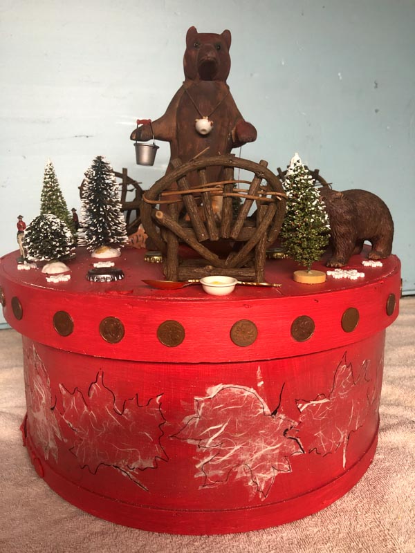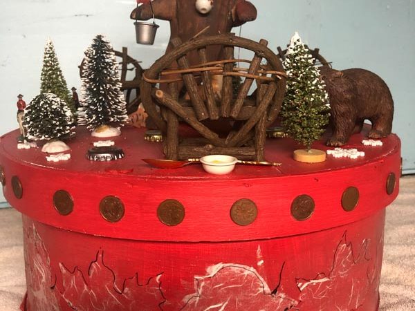 16 mixed media constructions, fashioned from Amish cheese boxes. Together, they tell separate stories involving contemporary topics in a satirical, whimsical way. Each cheese box presents is a vignette portraying offbeat realities that evoking …
