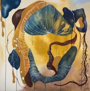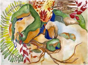 The lands we live on and interact with are deeply linked to our sense of identity and origin. These works explore our spiritual connection with the natural world and challenge our capacity as humans to connect to nature when we are growing further apart. This theme is expressed in a variety of mediums by this mother and daughter team. Some of the art works are collaborative and the different mediums used are drawing, printmaking, watercolour, oil and acrylic painting, fibre art and sculpture. It has been a great pleasure to work together on this show – to encourage, support and learn from each other!